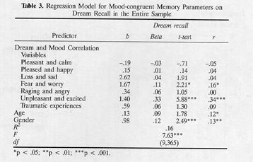 Table 3. Regression Model for Mood-congruent Memory Parameters on Dream Recall in the Entire Sample