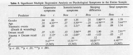 Table 5. Significant Multiple Regression Analysis on Psychological Symptoms in the Entire Sample