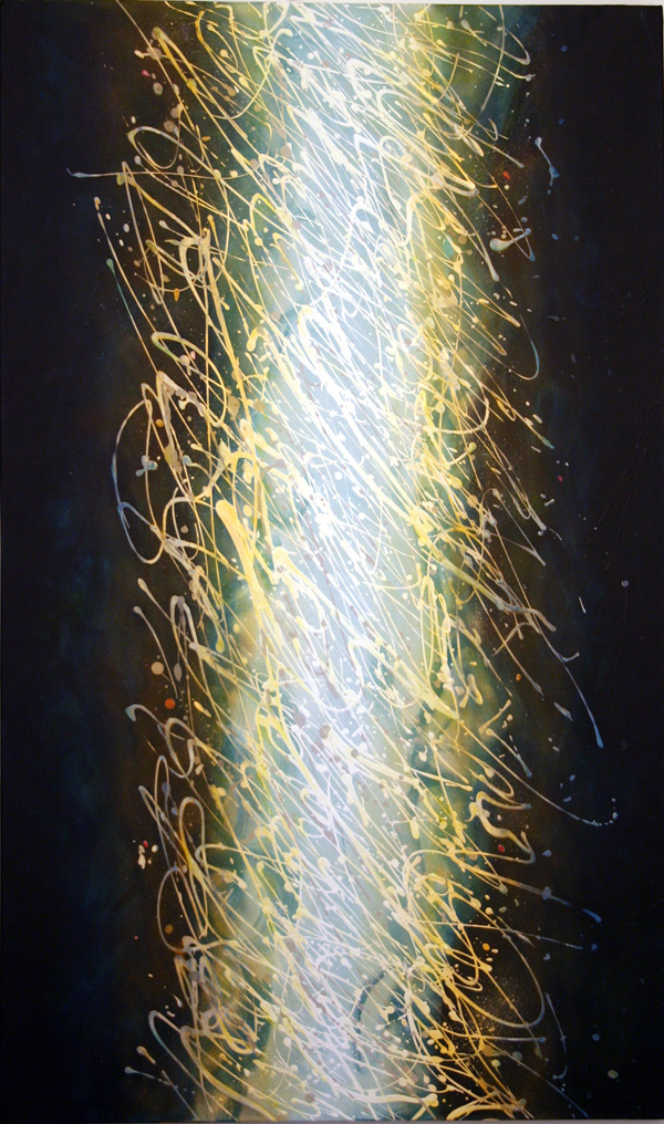 Title of Work: Hyperlucidity Medium: Acrylic on canvas, 60" x36" Date: 2007, Third Script # 7 Hyperlucidity Dream body moves towards light then disappears bursting into particles. Consciousness remains fully awake witnessing all dimensions within hyperlucidity. Fariba Bogzaran, 2007 Note: Most of my inspiration in my paintings come from fragments of images in hypnagogic experiences and lucid dreams of light. This painting is an image of a repeated theme in my hypnagogic and lucid dreams. |