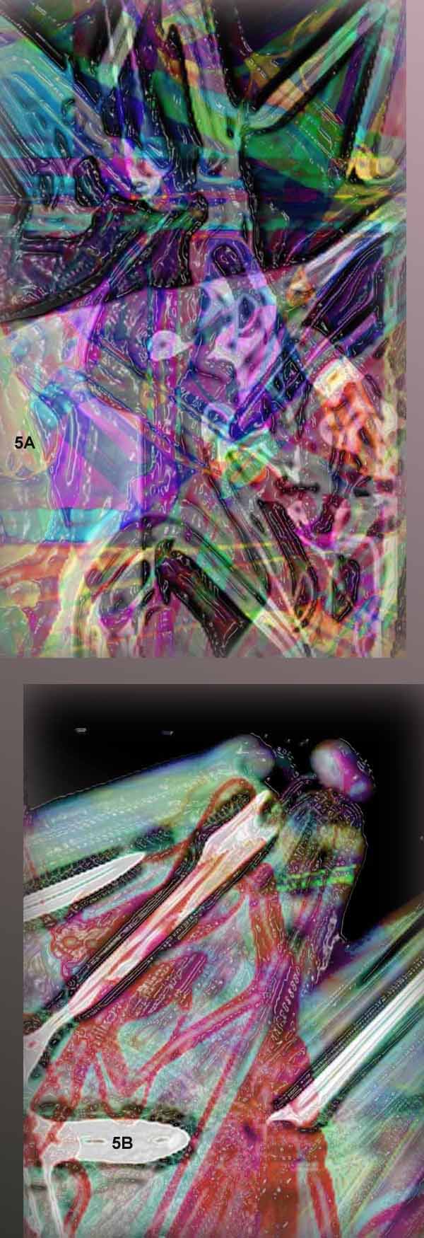 to be a chicken! Medium: Computer Graphics Date Created: 7-29-2009 1A - DS04_05_09mething is super-positioning, then electrical flow is sent into this system. - Problems of winter equipment - I am going to the bookstore to buy a more advanced compiler - An immense red octopus is sliding out of the bus and covers the whole street. 1B - DS07_29_09 - We witness self-mutilation. A person cuts his eyes out then wires are showing out of his throat. - A kind of war is under development. We stay aside. - I am descending using my hands only. A neighbor has a small steam car that works well. - A fat man is probing some chemicals. I ask for a string to keep my pants tight but I am changing my mind and live without. 1C - DS11_13_08 - Exam at the State Department is going on. Lot of people around. - We are descending on channels padded well so we can brake at will anytime. A black tube is provided to go back up, but is not secure and I do not use it. - I am registered for an exam. I am discussing ahead with the teacher about it. - Busses with delegates are coming to coordinate events. 1D - DS01_03_09 - I am sitting on a chair at the bank. One can see a green valve mounted on a pipe. A women is close to me the she leaves the bank. - Problems with a black camera to take pictures. It contains a bobbin that mounts inside. I am sitting at a boutique. - Blue sky and I can see that a statue at the church has chest problems. - The Quattro Club is hiring busses. 1E - VS05_24_09 - I am with a girlfriend. - I am with another girl at the college. She is reading literature from an portable electronic device. - I am visiting an old girlfriend nor retired. She did not marry yet. There are other girls around. I am taking care of a chalk, and collect some Ferro-Magnetic core from a wall. NNOTE: D – Dream, V – Very large array, S - Slide See previous PsiBer expositions for other explanations about dreams sliding techniques. Medium: Computer Graphics Date Created: 8-15-2009 2A - VS06_07_09 - In the morning I am sitting at a desk and play with a clock that has many buttons. A friend and his father is just coming. I already packed I am ready to go. - I am alone in a big apartment and I have a lot of dogs and big TV screens. - I am laying down on a trail with a brief but wise slope in the summer. I am entering and get a big cigar. I am discussing about the basement windows to be reduced so that one cannot penetrate through them. 2B, 2F - VS04_10_09 - With a friend we are using the window to exit the house. A black fly is mounted on the window. - I am sitting inside a room at a motel with a rose power supply that I did mount. A girl is coming and si is starting to search some papers that contain figures in the shape of triangles and some other numbers. She is crying. - Problems with a picture of an old ugly girl. 2C - VS01_12_09 - I am wearing blue jersey open in the front but covering the back. I am wearing something on leather on top. Somebody is asking who did hire me. I said that Mrs. Walter. - I box that is doing pictures is very used. The color is light brown. - I am in a big room where the floor is so thin that one can see through it. I plan to ask for replacement. In some other big rooms the floor is good but there is no light. In the last room there is a turntable and some other electronics in working order. I am looking to see how to disconnect it. 2D - DS08_15_09 - In the elevator housing an animal was dwelling some time ago. - A water bridge just got away. - Two monochromic images based on orange. 2E - VS05_06_09 - Chuck is student. I am taking the initiative for organizing something. - I am involved into a dynamic sequencing of elements abandoned by my colleagues. - I am taking a sportsman in my car and I am explaining him how we are going. 2G - HS04_13_08 - I am with a friend. A horse is somehow playing toward us. Finally a heavy-duty transport machine collects the horse. NOTE: D – Dream, V – Very large array, H – Helios, S - Slide Title of Work: Catinca Medium: Digital Graphics Date Created: 7/4/2007 3A - VS07_04_09 - We are discussing inside a bus about a new engagement. - A woman is carried of about her husband. They are living inside a tall building. I am descending dark stepladders wit a colleague. - White linen is scorched on one side and some straight lines on the other. 3B - HES06_11_09 - A woman is bringing a car. We are going on a street looking for an entrance. Another person is waiting with another car to get us back. - At the room’s window a big metallic tower is showing up. - With two ladies in Holland discussing about a three digit books code. NOTE: V – Very large array, H – Helios, S – Slide, E – Enhanced The enhanced helios slide is obtained by using dreaming hybrid data from sources outside direct human contact filtered to temperatures no less than 1000000 degree F. Title of Work: Only for Men Medium: Digital Graphics Date Created: 8-2-2009 4A - VS01_15_09 - I am having dinner wit a lady. I am going to arrange two chairs. I am calling her then and I found her in a small room with another men and women. She is crying. - Inside a store two pillars did move at 90 degree. - I am looking at some wooden coverage under research about best supporting links. 4B - HSBW06_29_09 - At a railroad station close to two cars. I am stopping a metallic desk to hit them. - Big bedding inside a room. Sleeping is two for the bed. One person is wearing a scuba diving suit. - Big bed having exotic fruits around. 4C - DS04_12_09 - A colleague has a child that has a bicycle with a big wheel and spare tire. - New forms implementation. - A bicyclist is coming very quick and is falling on the field. He is loosing both arms. Then he is crawling back and re-attaches the arms. - I am clarifying wit a woman that her name is Christine and he is of the Czech origin. 4D - VS08_02_09 - The parents are going into the train. We are discussing about the red girl we did discussed two years ago. - I am looking fo