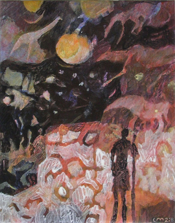 Giraffe and Watcher Medium: Acrylics on Canvas Date Created: 2008 The painting, too, is not about a particular dream yet to me represents the nature and spirit of dreaming just in a different setting. I always love when animals cross a dreamscape. From that point of view, the image is about the heart - of the earth as well as our own. |