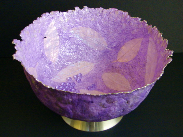 Cast Paper Meditation Bowls Medium: Paper Date Created: 2009 About ten year ago I had a dream that I was creating objects from paper pulp--luminous, beautiful items which I just loved myself and others were attracted to as well. I felt strong and vital in the dream and so happy. After I woke up I went to the library and found exactly two books on the "new books" shelf--one was on how to cast paper pulp into bowls, and the other was on following your dream wisdom. So I began a long and compatible relationship with casting paper, which has evolved into creating handmade bowls for bowl-and-bead meditation. The beads dropping into the bowl, as you state your affirmation or prayer, create sound waves which will carry your intention out into the universe to gather up energy. Sample meditation: "I am at peace. I am at peace with myself. I am at peace with all. I send peace into the world." |