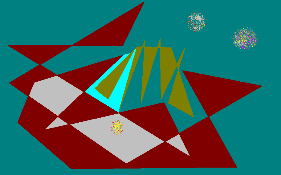 Untitled Medium: Computer Graphic Date Created: 2001 I'm new to computers, and am trying to learn how I can share a bitmap image I composed in the days after Sept. 11. This image was inspired by a dream. Here's what I wrote in my dream journal on Sept. 12: Sept. 12, 01 Fragment:: Two buildings falling backwards toward each other in a diagonal, three circular objects in the sky. The bitmap I made turned out to be a sort of tromp de'oeil. |