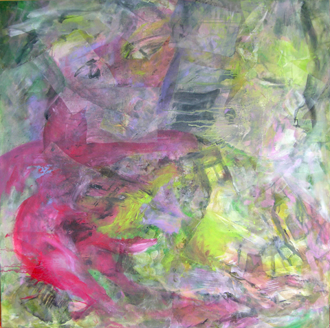 My Love. Medium: Acyrlic Paint & Digital Photo Transfers Date Created: 2009 I am a child sitting on a rock deep in the forest. I am looking at a lotus flower in my outstretched hand. I notice a path before me leading down. At the end of the path a walled landing with a small white pyramid, to the left stairs lead up to an arched entrance. A small silhouetted figure on the other side of the arch is coming down a long staircase toward the arch. The stairs up through the arch seem to lead to a doorway out to the light and sun. Must I go down the path and up the stairs to get to the light? All of a sudden I am a man before a woman with all my sexuality exposed before me. I extend my sexual-ness with a lotus flower. I see my love before me. Oh! We both breathe at each other. Oh! We are shocked, surprised, pleased and excited by my offering. I extend my hand an invitation to my Love…. |